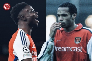 单赛季欧冠进球超过5粒,阿森纳队史仅亨利、萨卡做到