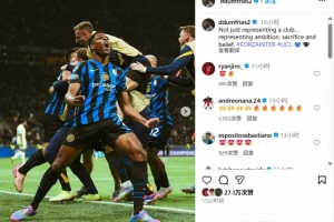 本场比赛邓弗里斯送出2次助攻,两回合半决赛贡献2球3助攻,邓弗里斯在个人社媒晒出与队友庆祝照片,配文写道:“我们不止代表着一直俱乐部,还代表着雄心、牺牲以及信念。”